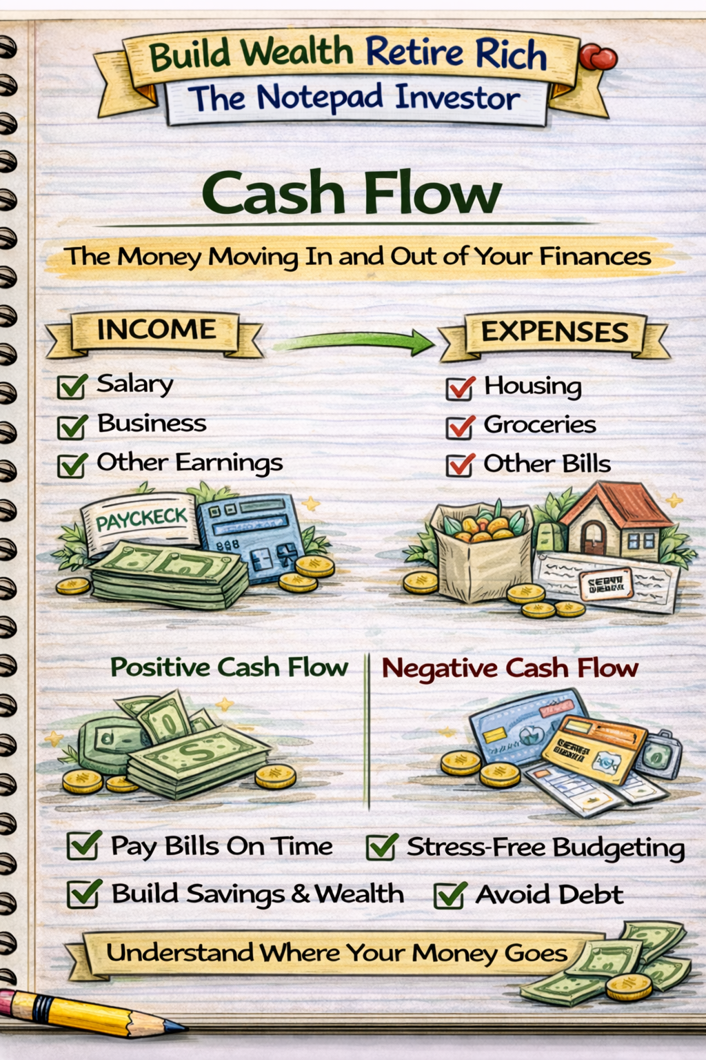 Cash flow describes the movement of money into and out of your financial life. Positive cash flow occurs when income is greater than expenses, while negative cash flow occurs when spending exceeds earnings.