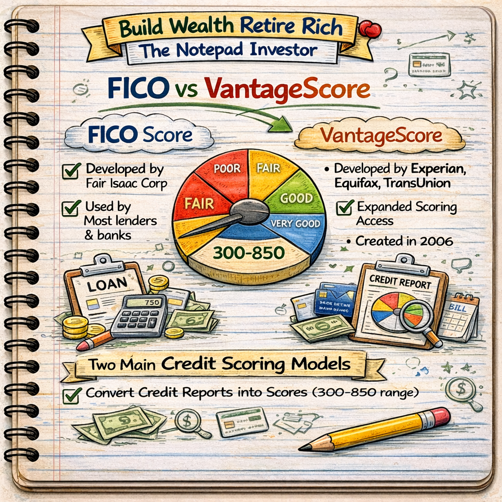 VantageScore was developed later by the major credit reporting agencies as an alternative scoring model. While it uses similar data from credit reports, the weighting of certain factors may differ slightly.