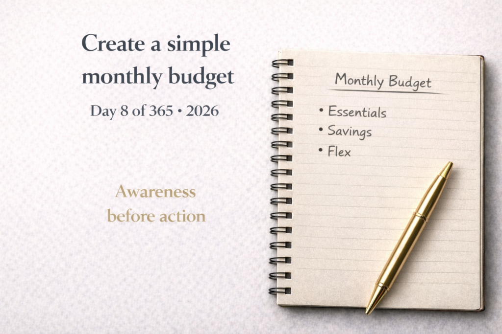 Day 8 is about creating clarity, not control. A simple monthly budget gives your money direction so everyday decisions feel lighter.